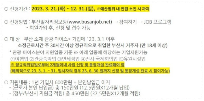 - 신청방법 : 부산일자리정봄보망 (www.busanjob.net)을 통한 신청 및 접수