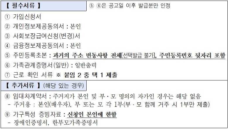 희망두배 청년통장 제출서류