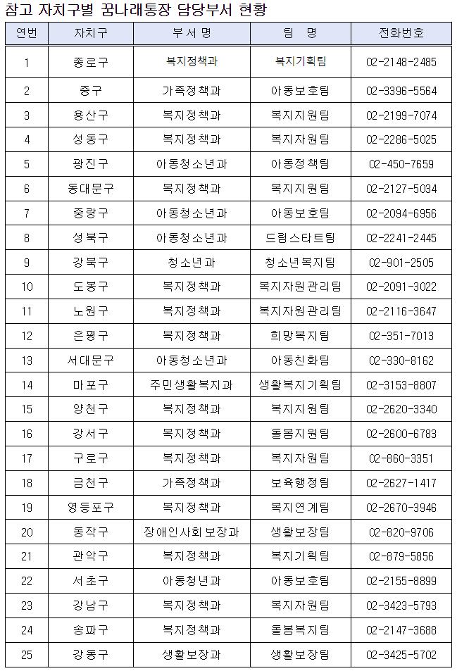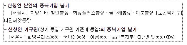 ○ 서울시 희망두배청년통장·꿈나래통장 콜센터 ☎(국번없이)1688-1453
