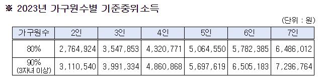 (단, 3자녀 이상 가구의 경우 기준중위소득 90% 이하)
