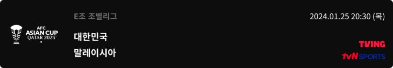 2024 AFC 아시안컵 e조 조별 예선 3라운드 한국과 말레이시아간의 경기가 한국시간 1월 25일 목요일 20시 30분에 시작한다. 2라운드 요르단과 비기며 골득실에 요르단에 밀려 조2위에 머물러 있는 한국은 3차전을 반드시 승리해야 16강 진출이 편해진다. 김판곤 감독이 이끄는 말레이시아는 피파랭킹 138위로 E조 국가중에 최하위에 머물러 있으며, 한국과의 역대전적을 보면 26승 12무 8패로 한국이 우세를 보이고 있다. 반드시 큰 점수차로 승리해야 조 1위가 될 가능성이 크기에 대승을 기대해본다.